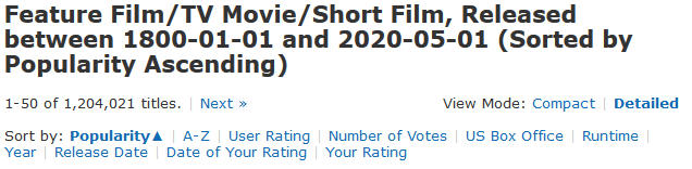- https://www.imdb.com/search/title/?release_date=1800-01-01,2018-11-01&title_type=feature,tv_movie,short